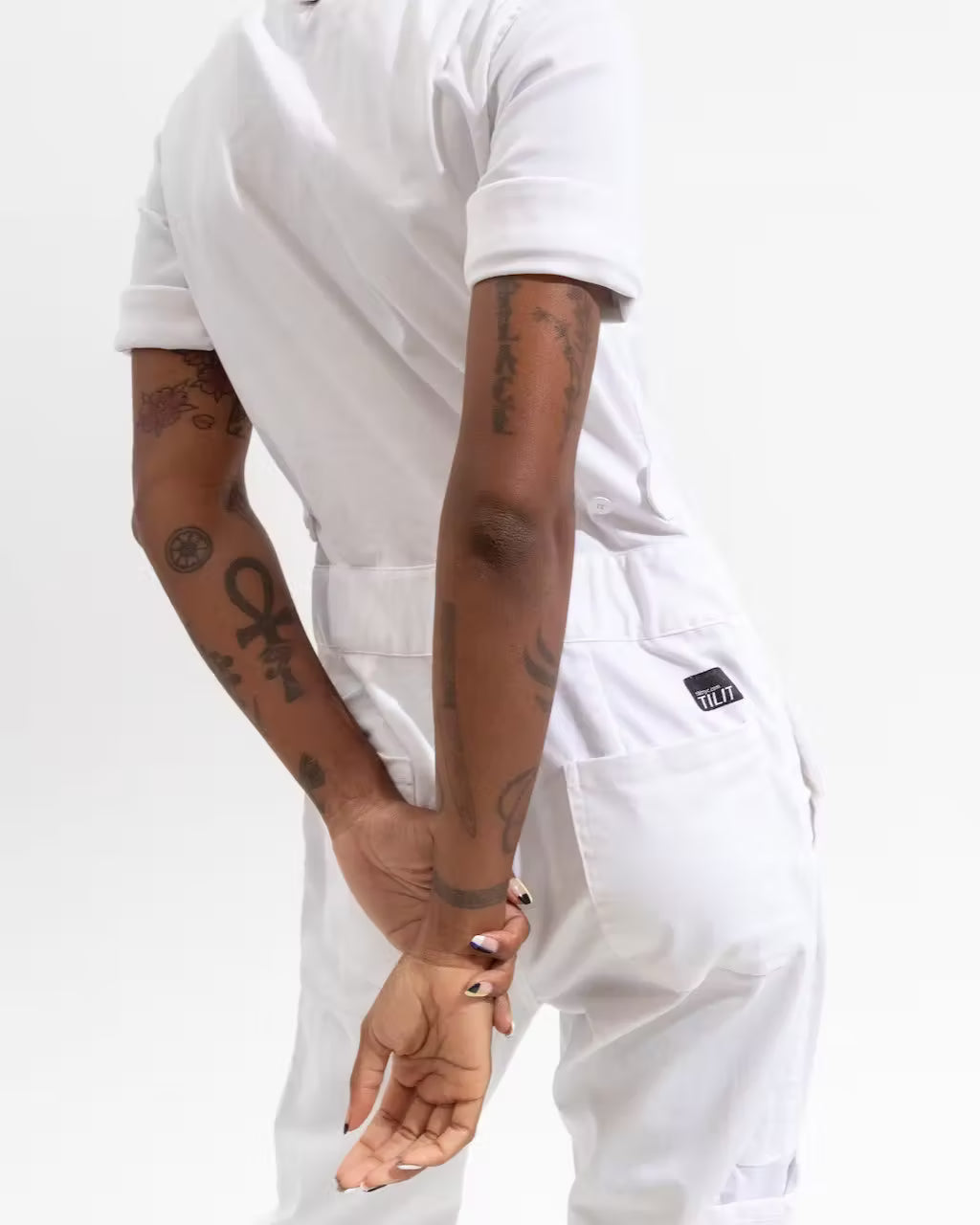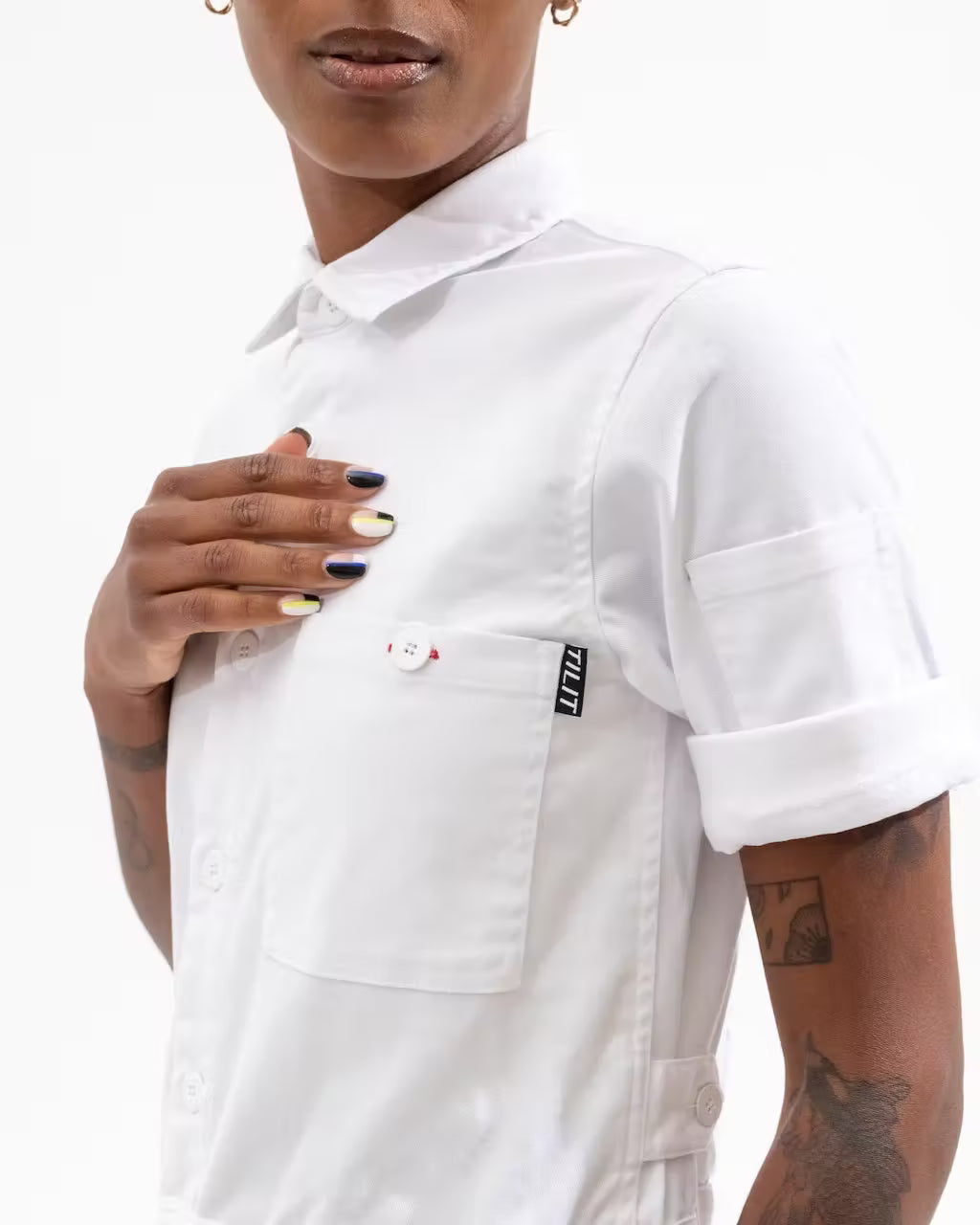 Embrace both style and resilience in the Blue Skies Women's Short Sleeve Jumpsuit, designed to offer a flattering fit and unparalleled practicality. Crafted from quality stretch twill fabric, this jumpsuit moves with you, supporting every busy moment. Durable construction and a timeless white shade keep you looking sharp, ready for any professional challenge ahead.