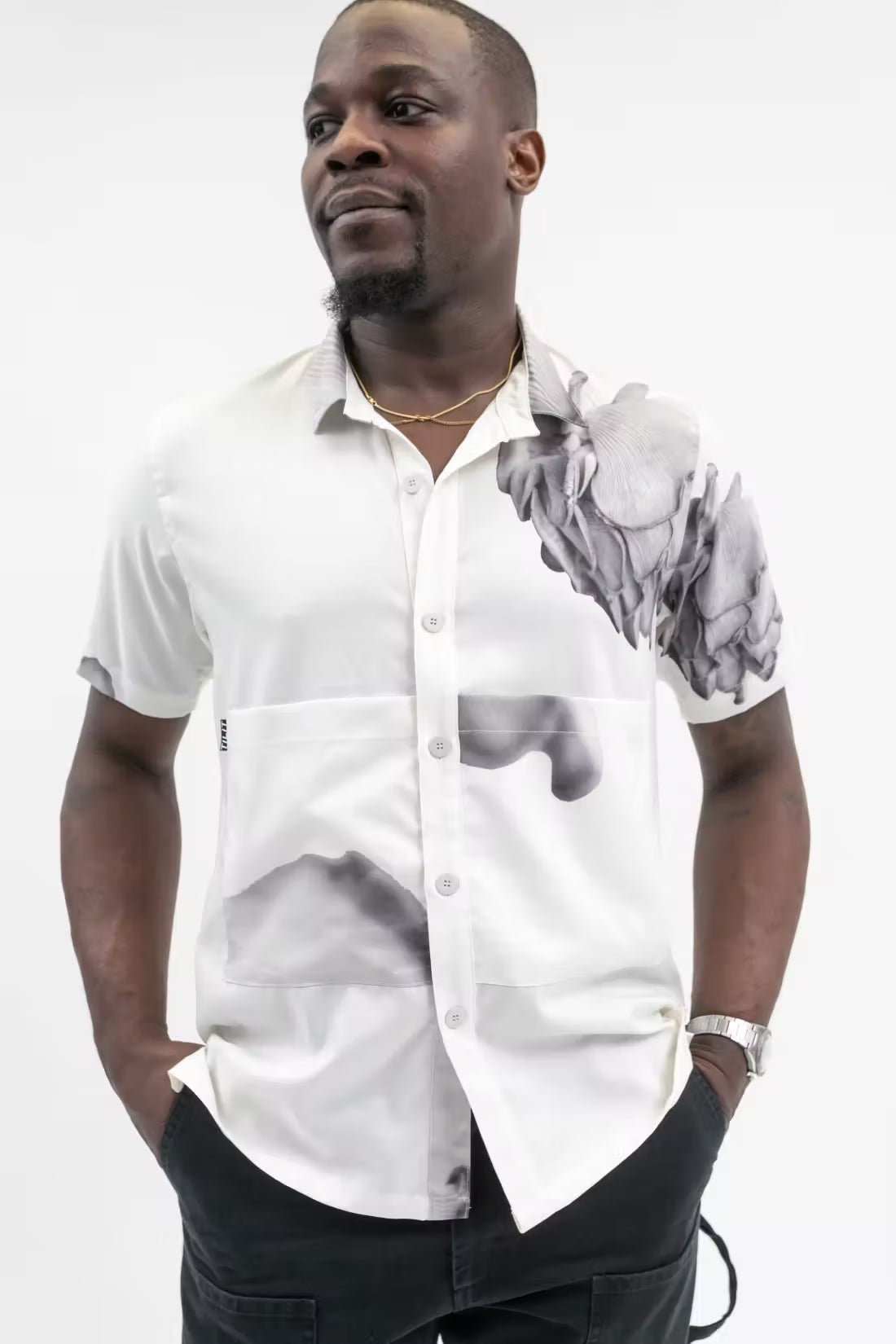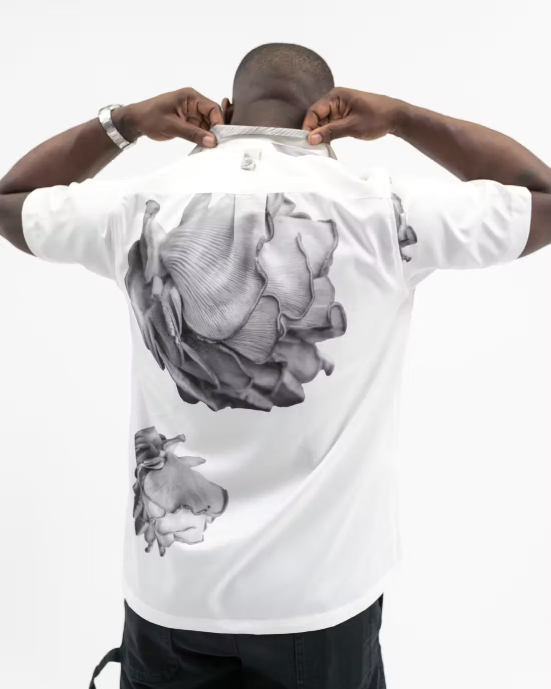 Meet the Box Shirt in Oyster Mushroom Print Faux Silk, a striking blend of bold style and effortless comfort. One of our well-loved seasonal styles created with a custom mushroom print and a smooth faux silk finish, this relaxed-fit shirt makes a statement in any kitchen or social setting. It adds flair to your day while maintaining the practicality and durability TILIT is known for in and out of the kitchen.