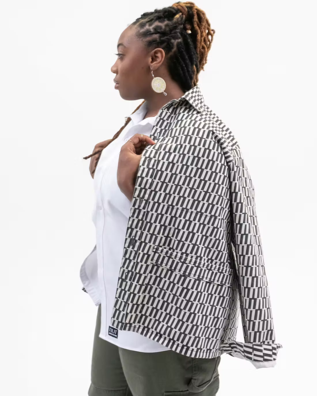 Introducing the Fall Formal Chore Coat, a perfect blend of style, craftsmanship, and functionality for the creative professional. Designed to make a statement without compromise, this coat features refined details like a sleeve cuff and inner chest pocket, delivering both surprise and sophistication in every element. Offered Kuroki Denim and iconic TILIT T-Print reminiscent of classic chef houndstooth adds a unique touch to the modern silhouette, making it ideal for professionals who value individuality. Whether you’re using your skills in the kitchen or out for the night, this chore coat works as hard as you do.