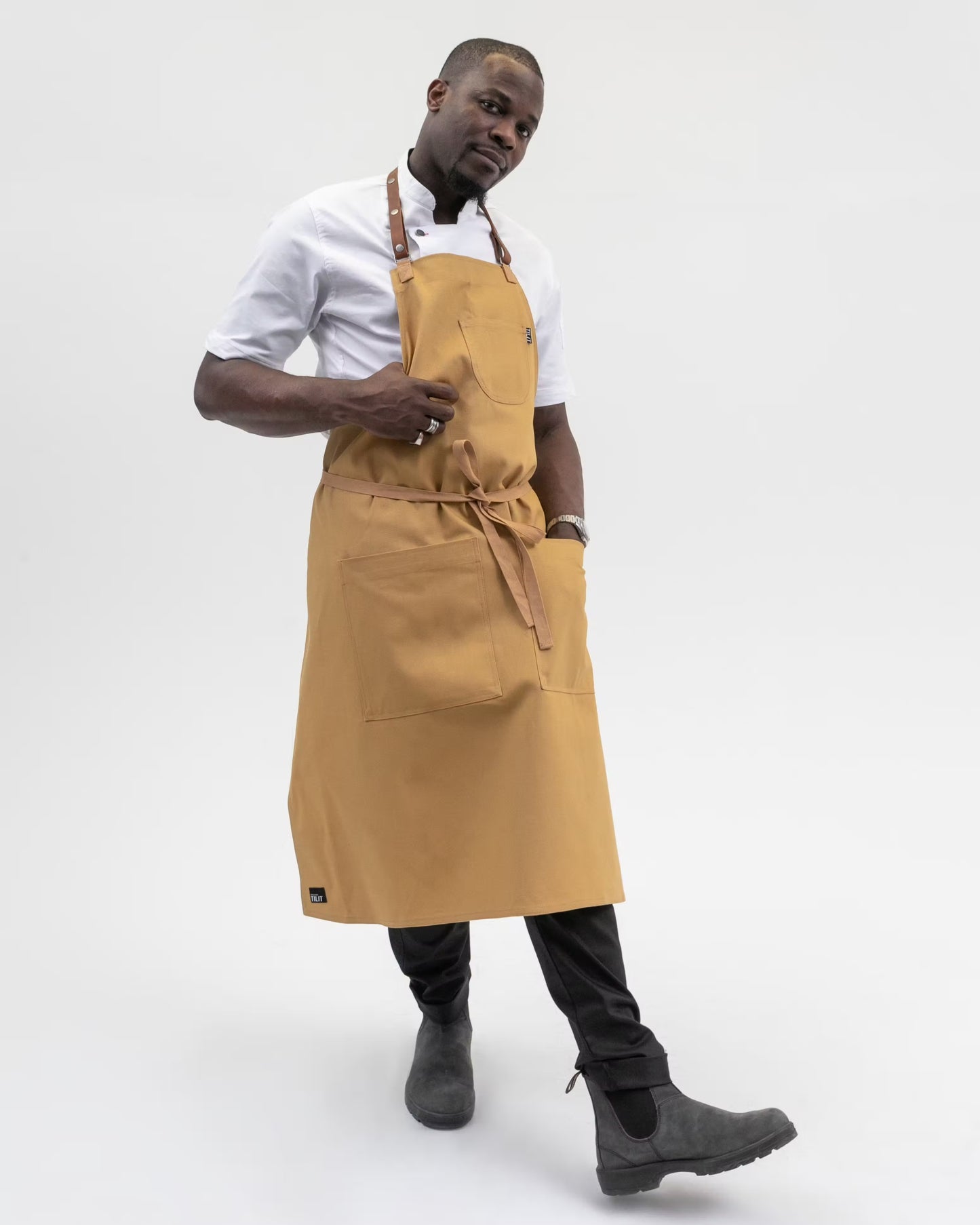 The LUXE Chef Bib Apron is our widest and longest framed chef apron, designed in a classic butcher style that blends timeless tradition with modern flair. This apron is the ultimate choice for professional chefs who want to exude style and sophistication in the kitchen. The adjustable full leather neck strap ensures maximum comfort, while thoughtfully designed pockets keep your essentials within reach. This is the granddaddy of chef aprons—where functionality meets an iconic, professional look.