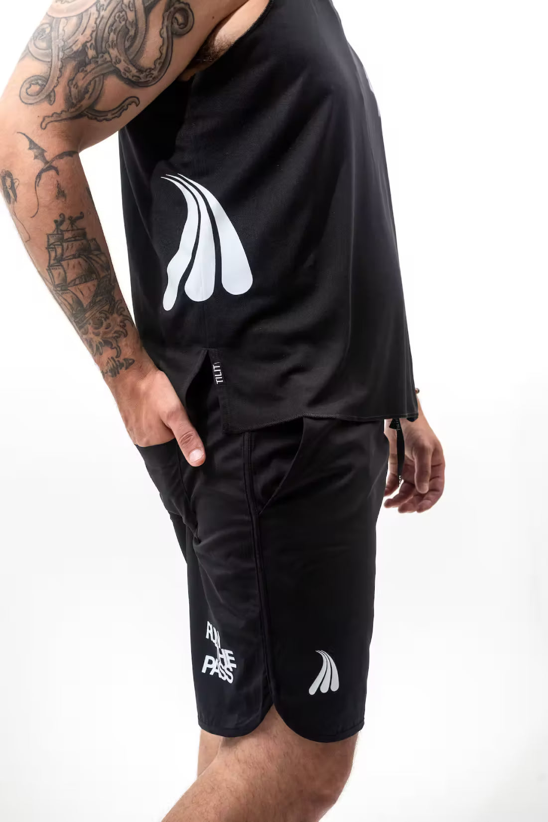 Cut from black hydrotech fabric, this singlet features serged edge detailing for a sleek, sporty look and side splits for effortless movement. Whether you're running the pass or running the block, this one's built to keep up.
