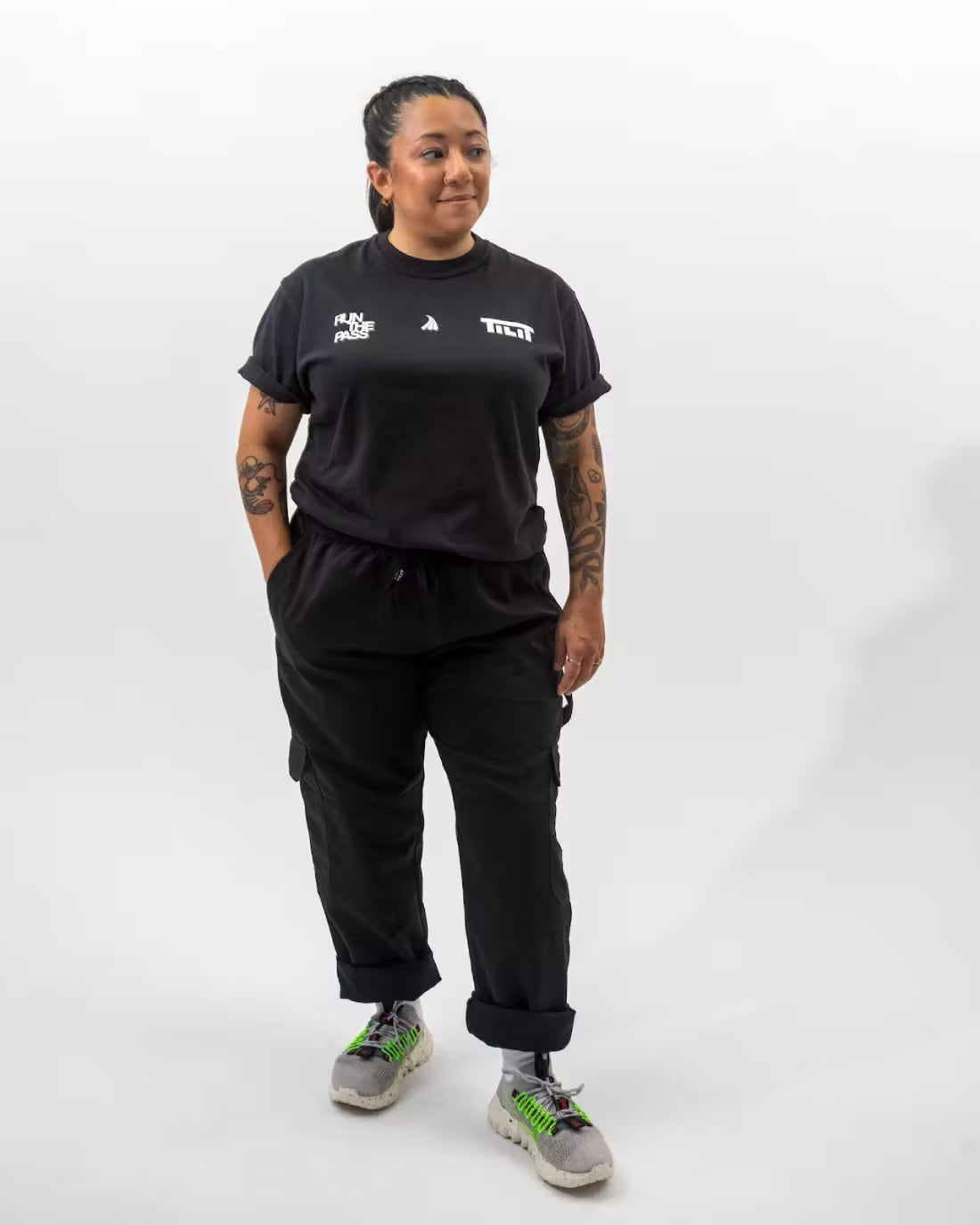- Signature Graphic Trio: The front chest graphic featuring the "Run the Pass" logo, a speed icon, and TILIT branding is a statement piece designed to symbolize motion, intention, and craft.