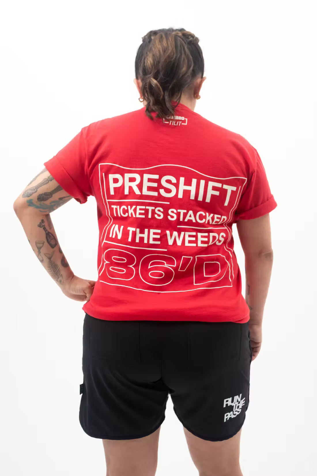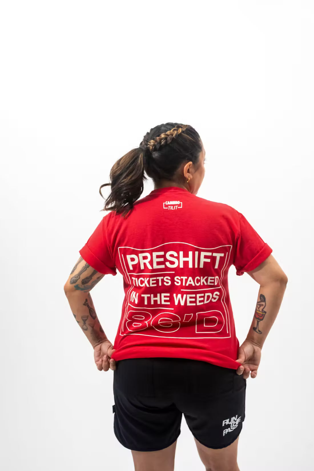 This red tee is a bold shoutout to kitchen culture, bringing CAMBRO and TILIT together for a summer-ready fit with chef-approved attitude. On the front, the CAMBRO + TILIT logo keeps things clean. On the back, it speaks the language of the kitchen, a mantra every service pro knows too well.