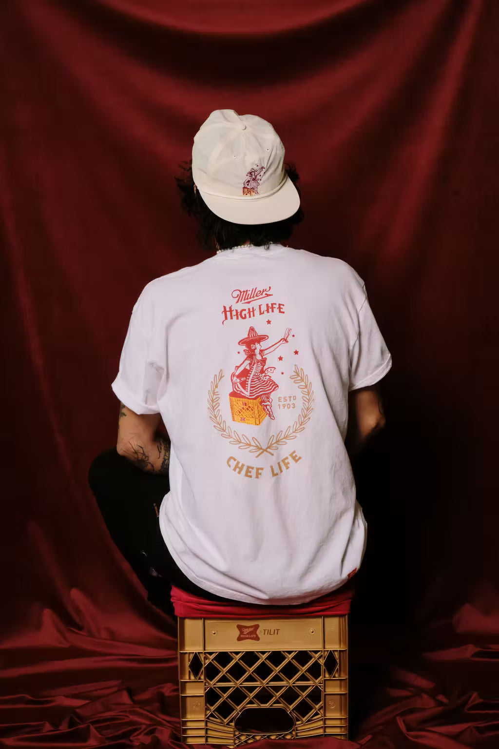 Enjoy the comfort of a fresh Tee with the collab of TILIT and Miller High Life. The perfect white tee featuring the golden crate throne crest for when the chef’s jacket is hung up and it’s time to head to the dive bar for post-work drinks.
