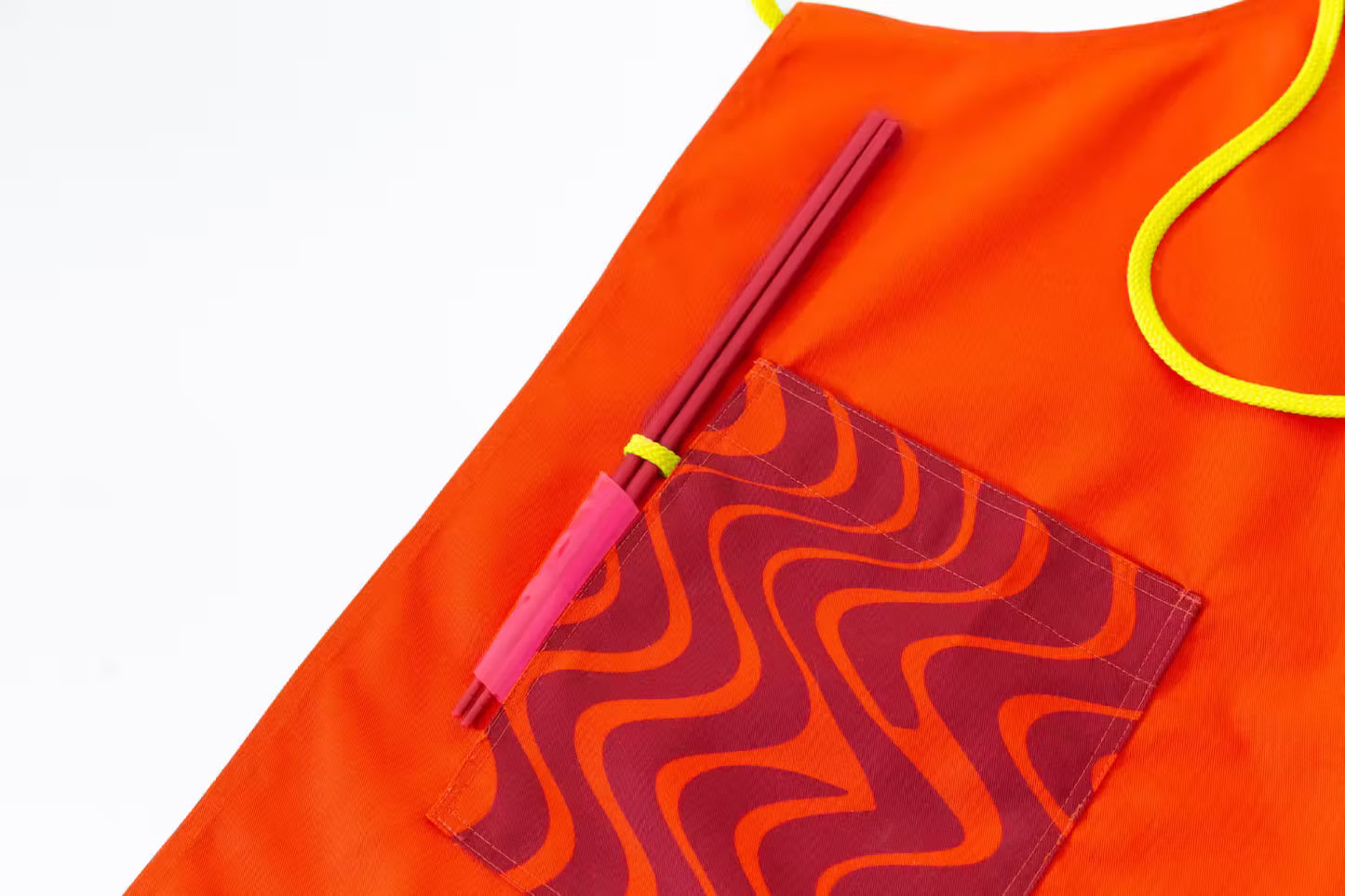 The aprons boast an iconic wrinkle-resistant material with a duo of nylon chopstick holders placed next to each pocket.