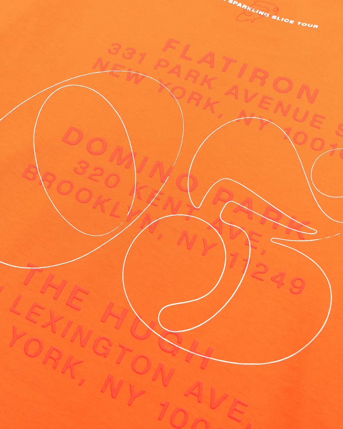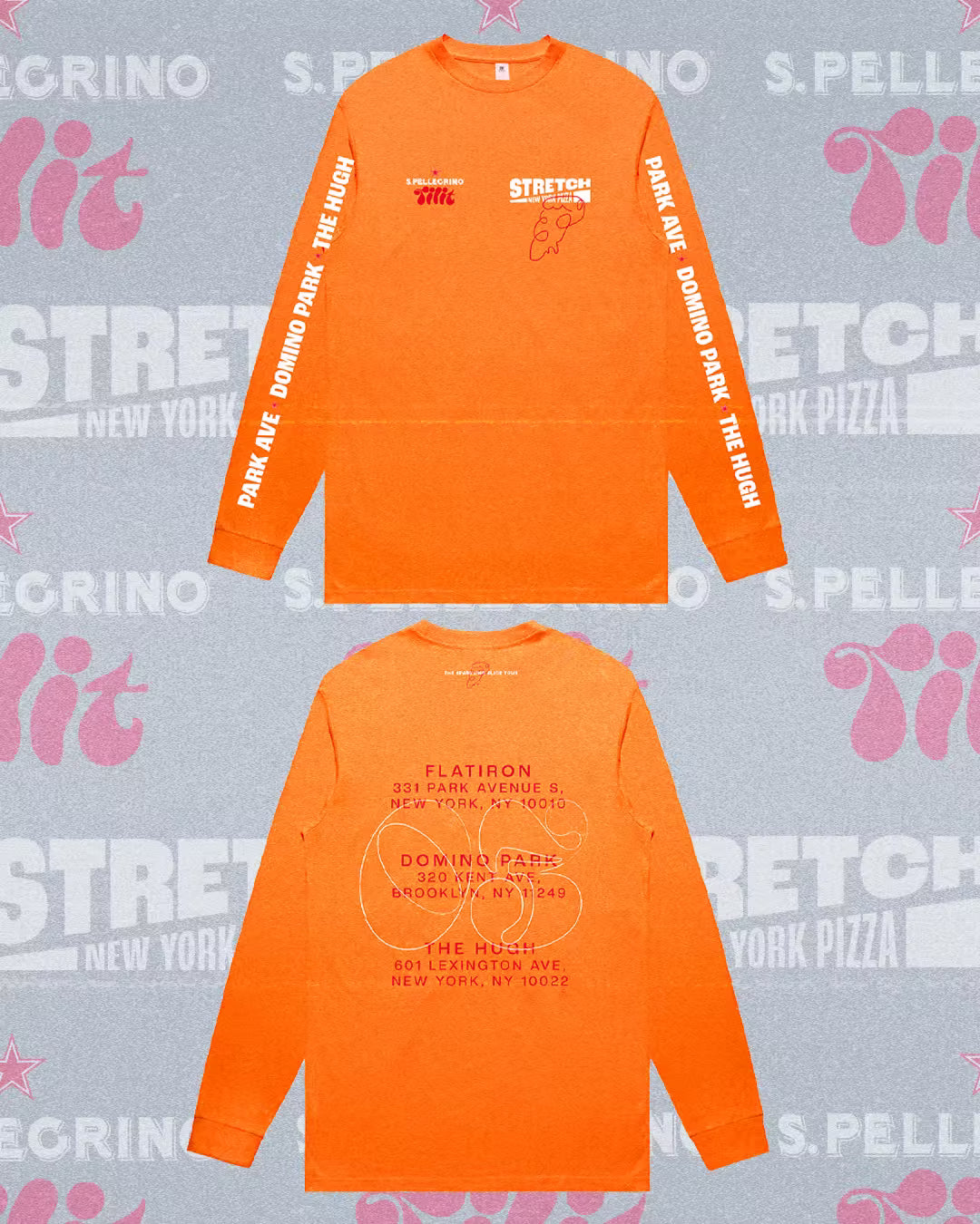 TILIT and S.Pellegrino are celebrating pizza nationwide, teaming up with NYC’s Stretch, chef Wylie Dufresne, and baker Gadi Peleg’s playful pizzeria. This limited-edition long-sleeve tee features their signature orange palette and is printed on soft, cotton fabric. Whether you’re strolling through the Lower East Side or catching views from the Brooklyn Bridge, you move fast and live bold.