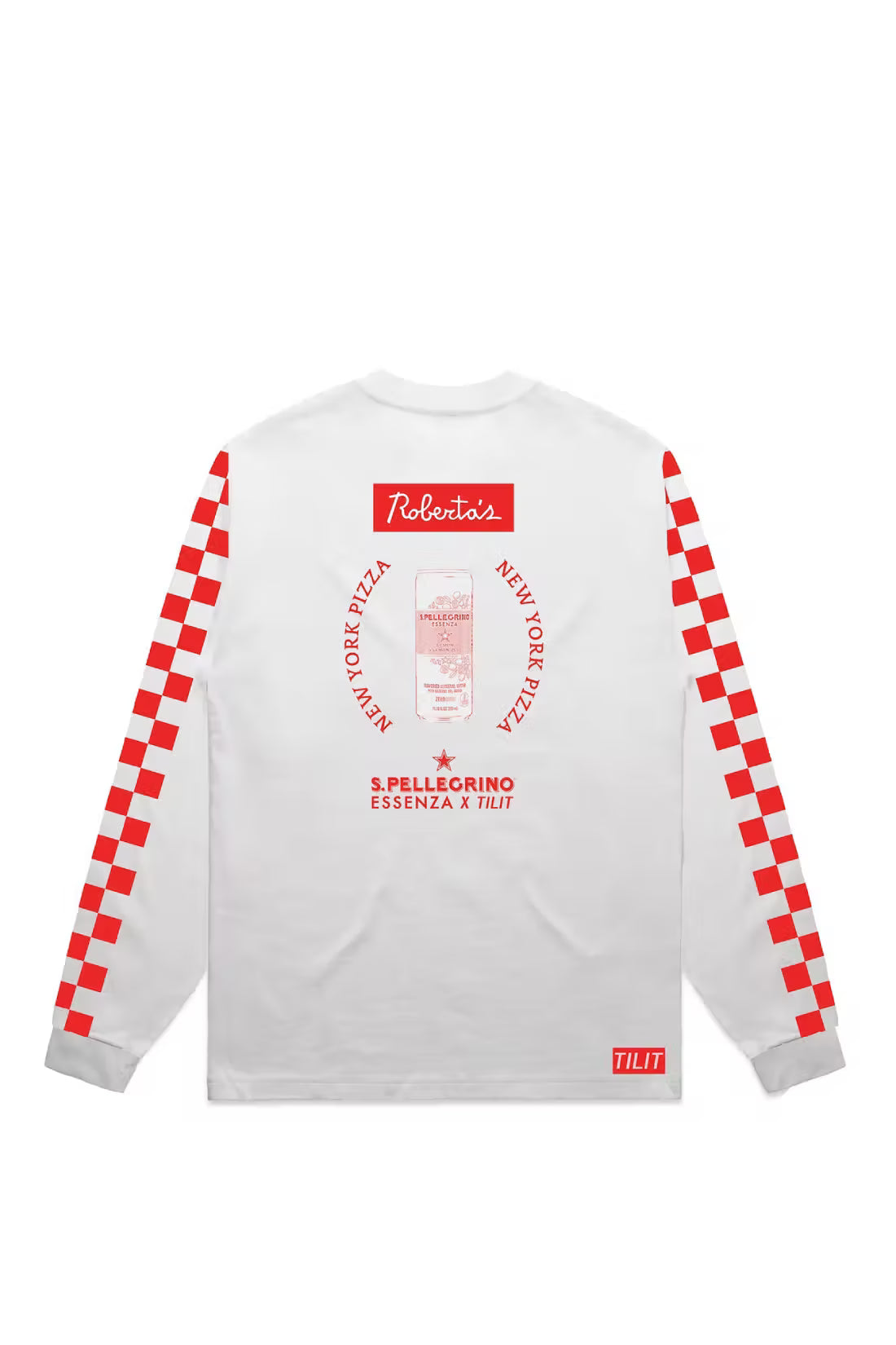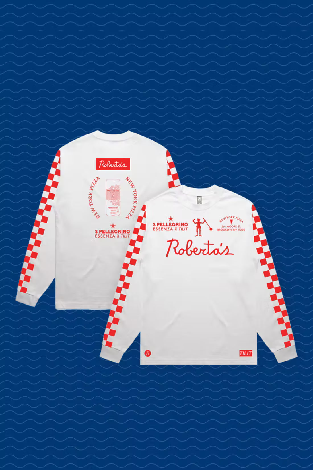 Whether you're just visiting New York or have lived here for years, you race around the city to get everything done! With pizza and S.Pellegrino Essenza Water as your main source of fuel, nothing can stop you in your new Tilit x S.Pellegrino x Roberta’s, Long Sleeve Tee.