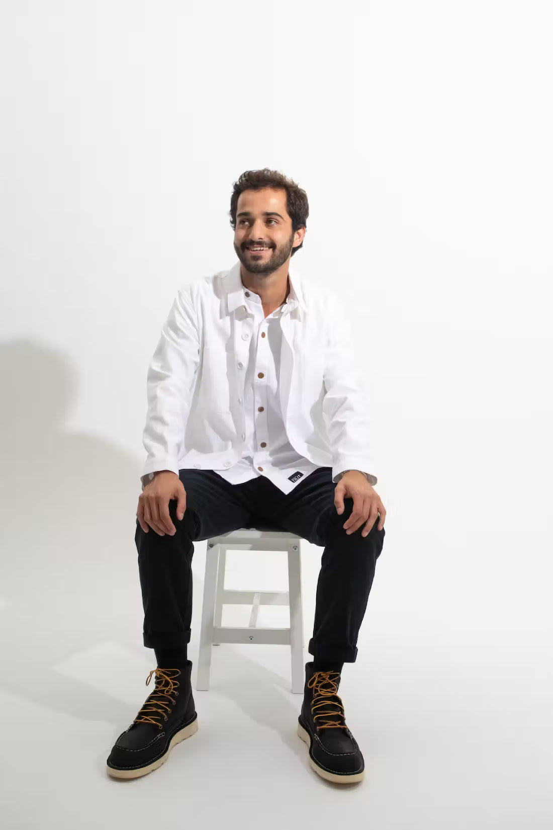 Our new Overshirt is the perfect transitional piece. It goes from the kitchen to the dining room and from Summer to Fall. Style it buttoned up or worn open and layered over the chef shirt. It packs with three functional pockets and our signature apron strap holder on the back of the neck for all-day comfort. Available in three colors: black, white, and olive. The Overshirt is designed and made with love in NYC from 100% cotton twill in a Vienna herringbone pattern.