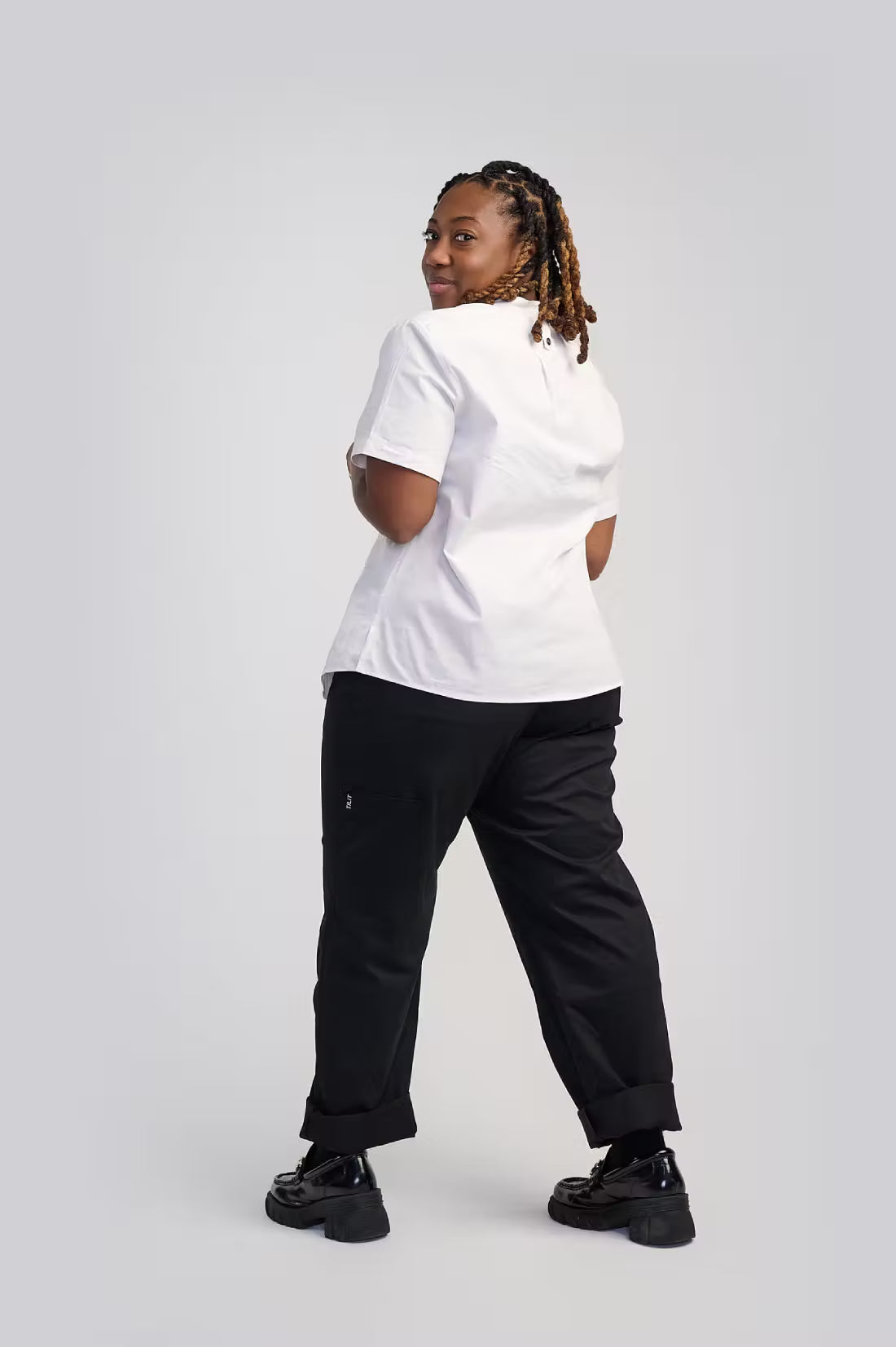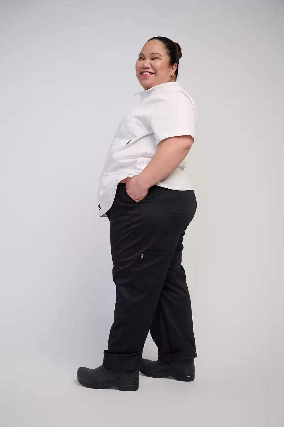 Im a curvy girl, pants always fit wrong specially chef pants, these in the other hand, the length the sizing and the option of making them tighter if needed, love. Will be definitely purchasing more ✨